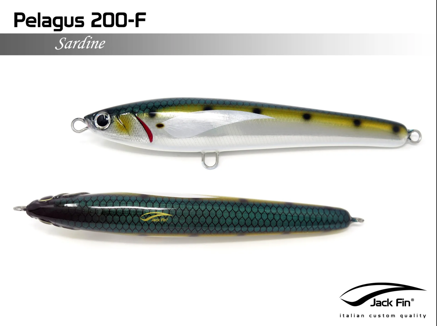 Pelagus 200-F is a floating stick bait designed for fishing big predators such as Bluefin Tuna and the powerful barrier reef fish. The slender shape is one of its important features to make its swimming customizable with various types of retrieve including: long jerking , short jerking and WTD. Thanks to its sinuous swimming it's able to attract the predator even from high depths, and this is what makes it great for tropical fishing. In Bluefin tuna fishing it has proved to be extremely effective both for feeding frenzy and for attracting the attention of single tuna. Its aerodynamic shape is designed to guarantee great cast distances.
