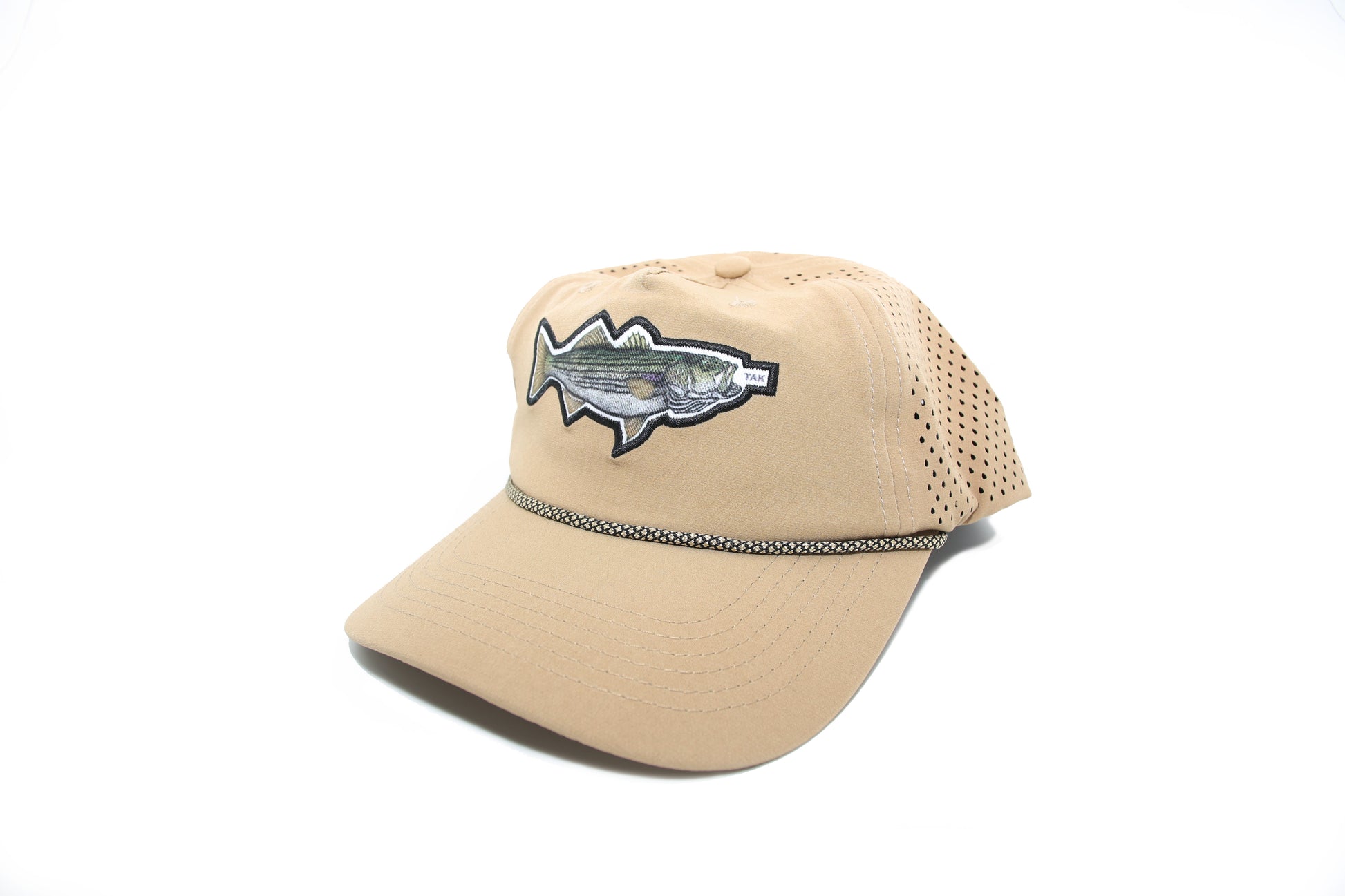 Crafted using high-performance and resilient materials, designed to repel water, stay buoyant, and ensure breathability. Featuring our Striped bass Logo. Enhanced by laser-vented dripmesh™ side panels to maximize airflow. Engineered to withstand any waterman's journey.