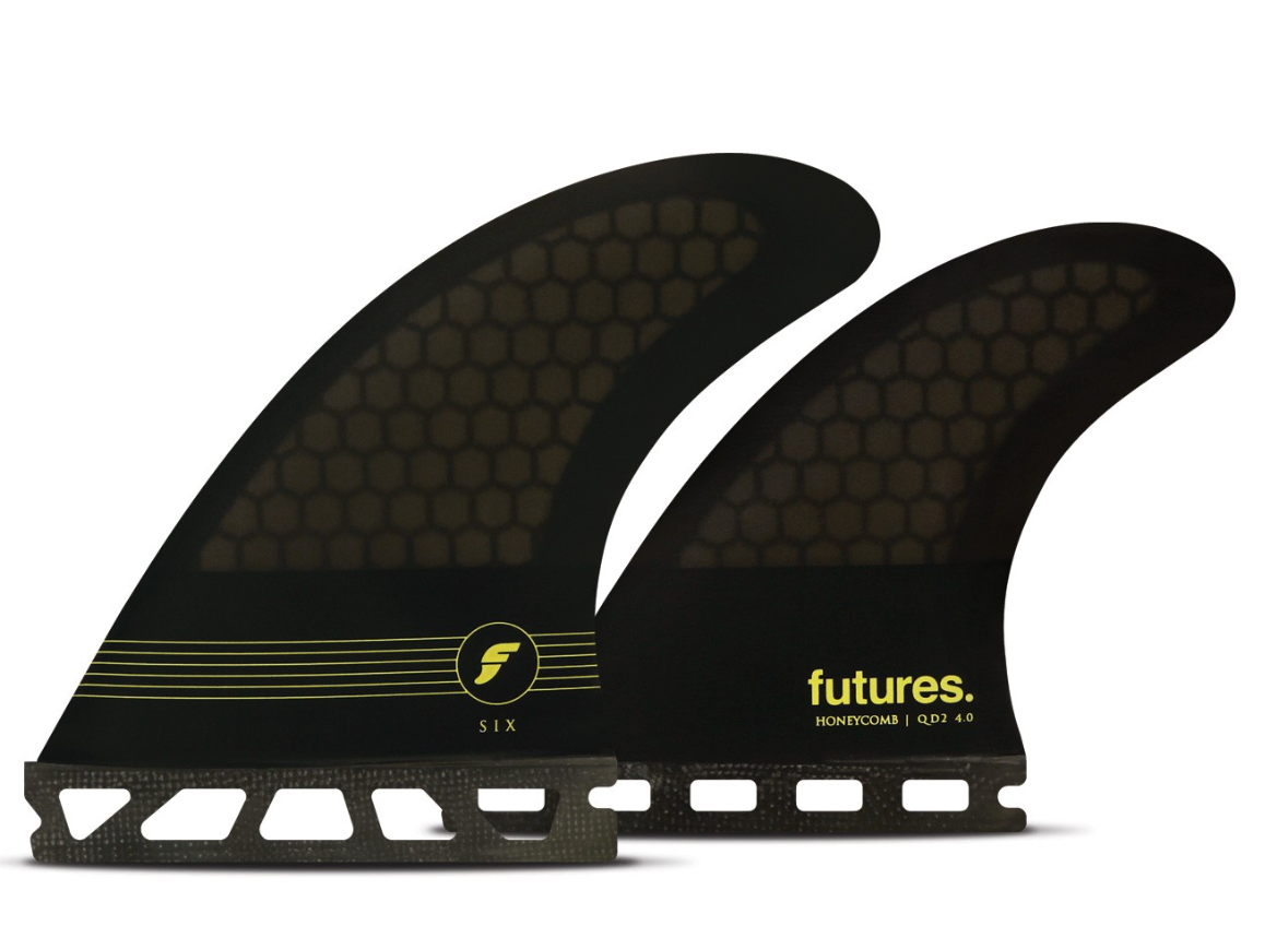 The F6 Honeycomb Quad is a medium size Balanced fin with a Ride Number of 5.3. This set is a scaled up version of our popular F4 template. The F6 Honeycomb's subtle flex pattern creates the perfect amount of drive and the slightly refined tip provides for additional release off of the top. A great go-to set for medium sized surfers.