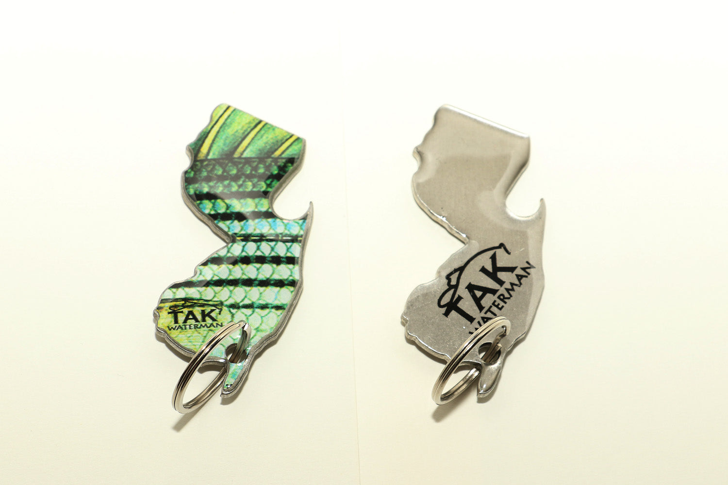 Stainless steel patented NJ-shaped bottle opener with our signature NJ Striper logo. Trust us, this is going to be the last bottle opener you will have to buy!