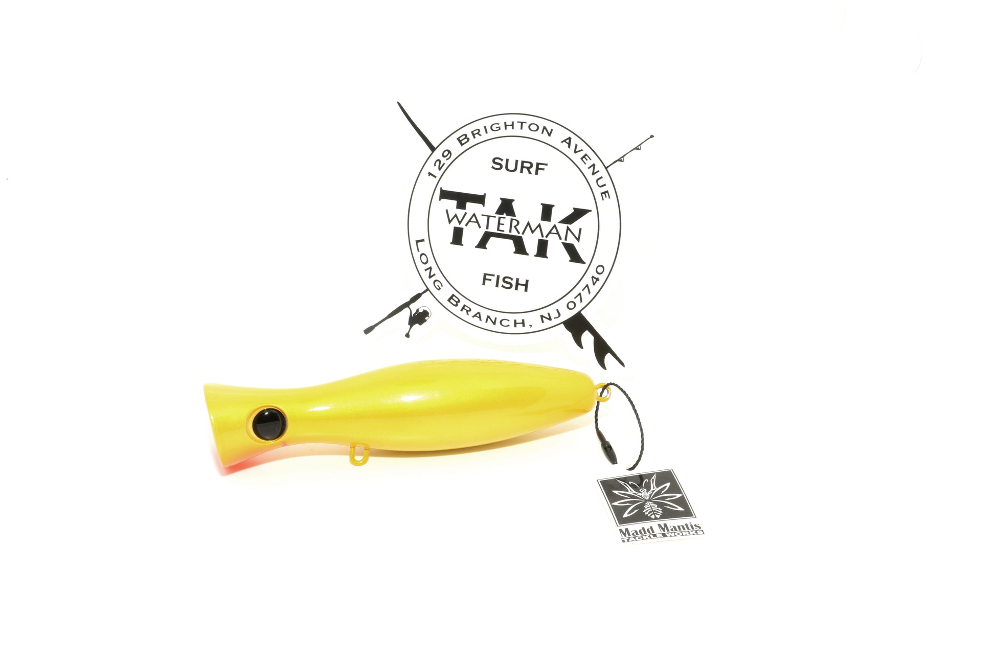 Madd Mantis poppers are constructed from very tough plastic and are thru-wired. The wide, cupped face throws a lot of water when popped, and makes a lot of fish attracting commotion. These poppers dig in very well and don't have the tendency to roll out like many others do. The larger size is great for Giant Trevally, and all species of tuna. The medium size is a great inshore/big game crossover. It can be used for striped bass, bluefish, and roosterfish. However, it is also a good size for tuna and GTs at the same time. The small size is a more inshore-specific size, for species like stripers and blues. (Hooks not included)