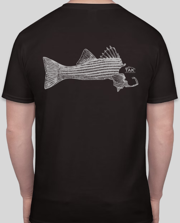 Two things you love stripers and your state. This light weight crew neck tee features our one-of-a-kind Mass Striper Tee from our Fishy State collection. Pre-shrunk, light weight & short sleeved, this shirt is great for a day on the water or a night around the bonfire.