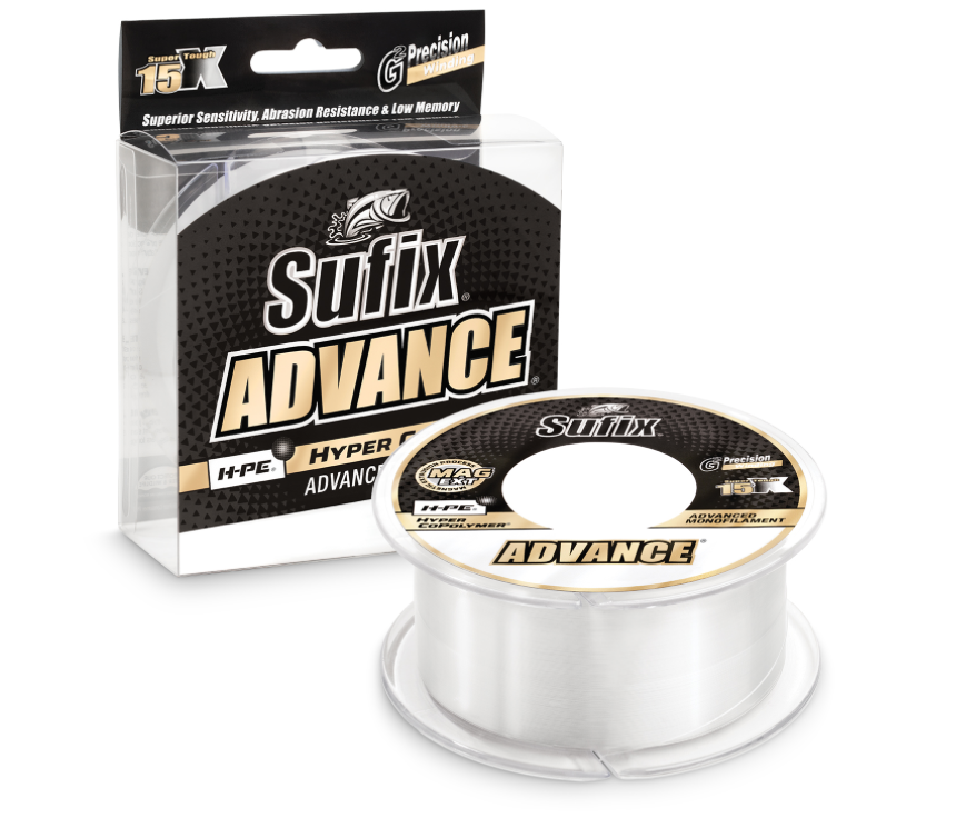 The mono that thinks it's a braid. The most abrasion resistant, supple and sensitive monofilament ever. Sufix® Advance™ Monofilament is a combination of HMPE and Hyper Copolymer™ creating superior abrasion resistance, low stretch and sensitivity that has never been seen before.
